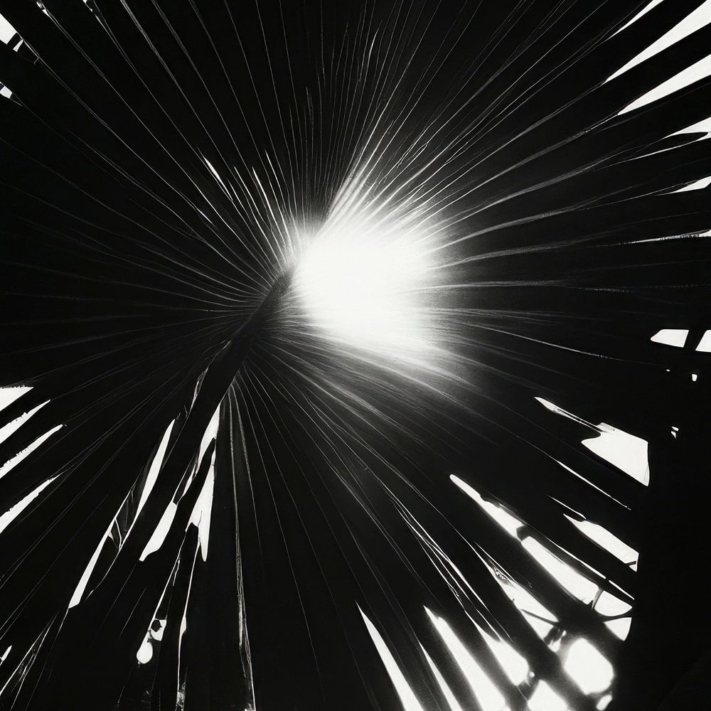 Shadowy palm leaves spread out, while a soft light radiates through their dense, fan-like structures. The stark contrasts between darkness and brightness create a fascinating interplay of shapes and depths, transporting the viewer into a tropical dream world in which nature and light dance harmoniously together.