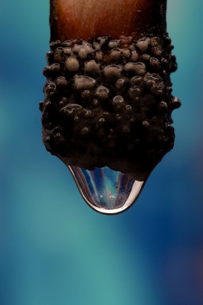 I like the smell of burnt matches and the corresponding macro shots. Here I experimented with a few drops of water.