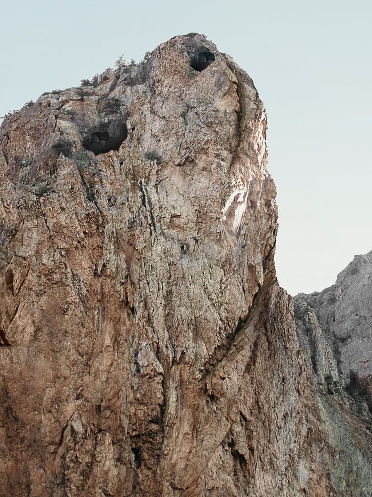 Welcome a touch of playfulness into your space with the 'Playful Cat Rock' print. A curious cat in the form of a rock appears captivated by a floating hot air balloon, playfully extending its paw to reach for it