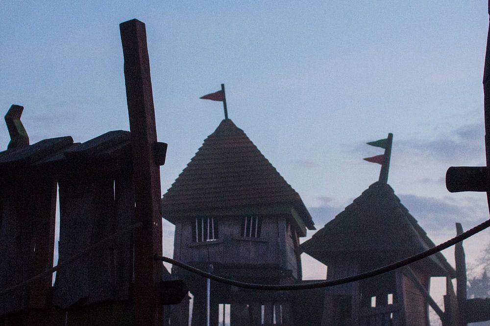A playground at dusk, like a scene from a game or cartoon