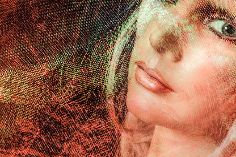 The work is built up from different layers in Photoshop. The basis is a mannequin. The eyes are from a photograph of a woman.