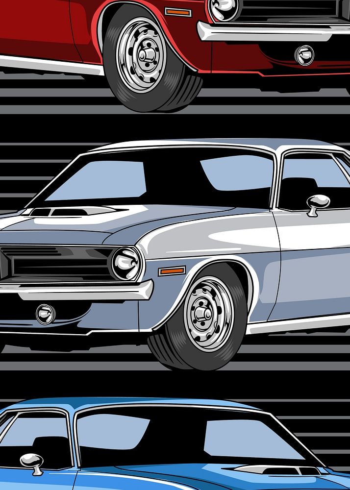 Buy this illustration Plymouth Hemi Cuda Muscle Car by Adam Khabibi on canvas, ArtFrame, poster and wallpaper, printed on demand in high quality.