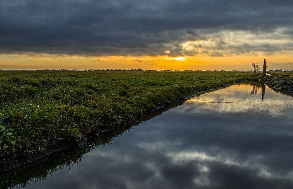 Buy this landscape artwork Polder reflection of clouds by peterheinspictures on canvas, ArtFrame, poster and wallpaper, printed on demand in high quality.