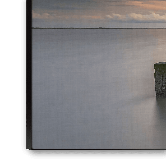 Long shutter speed photo of the Wadden Sea on the pier of Holwerd during sunset