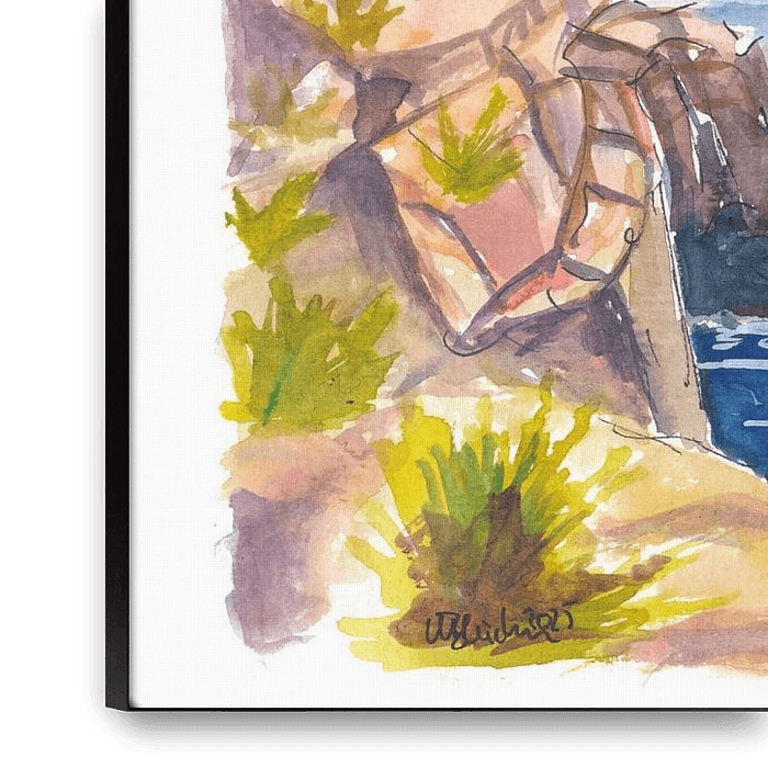 Polignano a Mare Puglia Painting - Turquoise coloured bay of Lama Monachile with cliffs and crystal clear sea