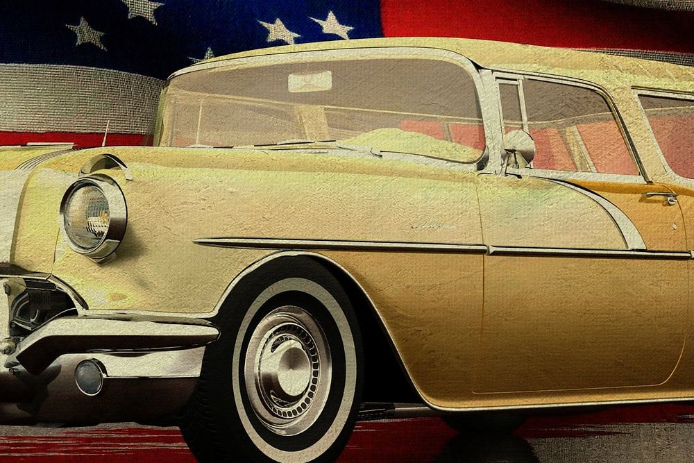 Pontiac Safari Station Wagon 1956 with American flag by Jan Keteleer