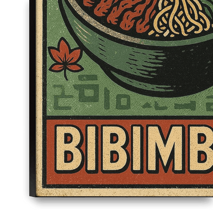 This vibrant Bibimbap poster celebrates Korea’s beloved rice bowl in retro pop-art style. Featuring a sunny fried egg centered among colorful vegetables, beef, and rice, the artwork showcases the harmony and balance of this traditional dish. Bibimbap, meaning “mixed rice,” is known worldwide as a healthy, flavorful Korean meal that…