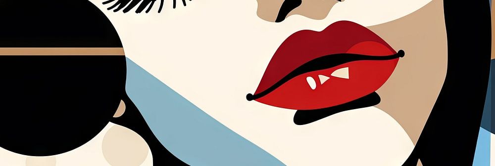 This painting is a captivating example of Pop Art that captivates with its striking geometric shapes and vibrant colours. The stylised depiction of a female face, accentuated by bold red lips and closed eyes, creates a balance between abstraction and elegance. The use of circles, rectangles and flowing lines gives the work a dynamic, modern aesthetic that appeals to both retro and contemporary art lovers.