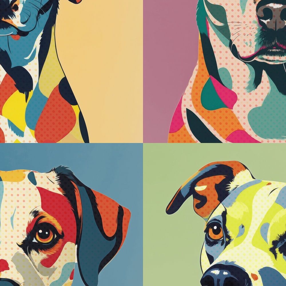 Pop Dogs Quartet is executed at an exceptional resolution of 12,000 x 12,000 pixels, making it perfect for large sizes without loss of detail. Ideal for those who love impactful art.