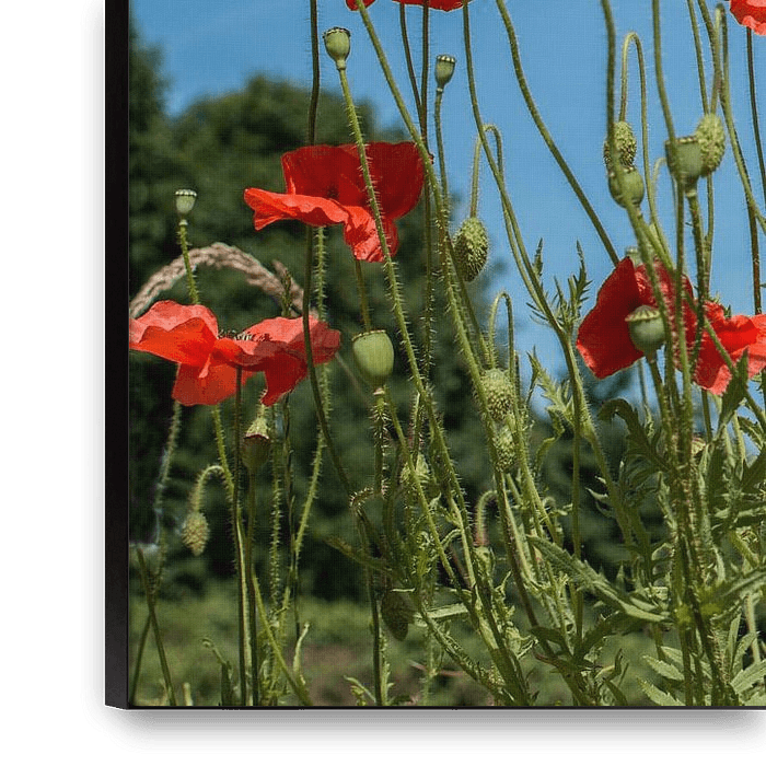Buy this flower art Poppies blue sky poppy by shoott photography on canvas, ArtFrame, poster and wallpaper, printed on demand in high quality.