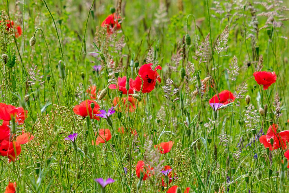 Summer in the Netherlands. A colourful collection of red poppies, wildflowers and grasses in a meadow near the Drenthe village of Schipborg. This image was taken in June 2025