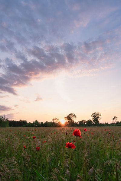 Buy this landscape artwork Poppies in the Evening Glow by Manon Huls on canvas, ArtFrame, poster and wallpaper, printed on demand in high quality.