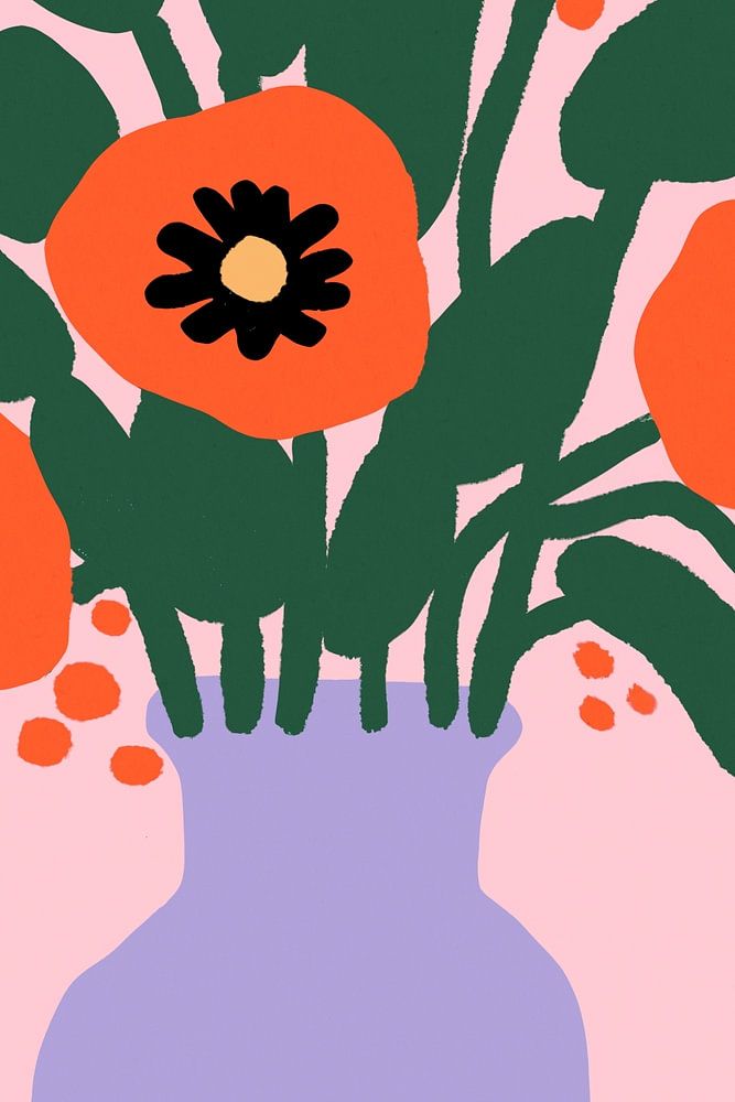 Buy this flower art Poppy In Purple Vase by Treechild on canvas, ArtFrame, poster and wallpaper, printed on demand in high quality.