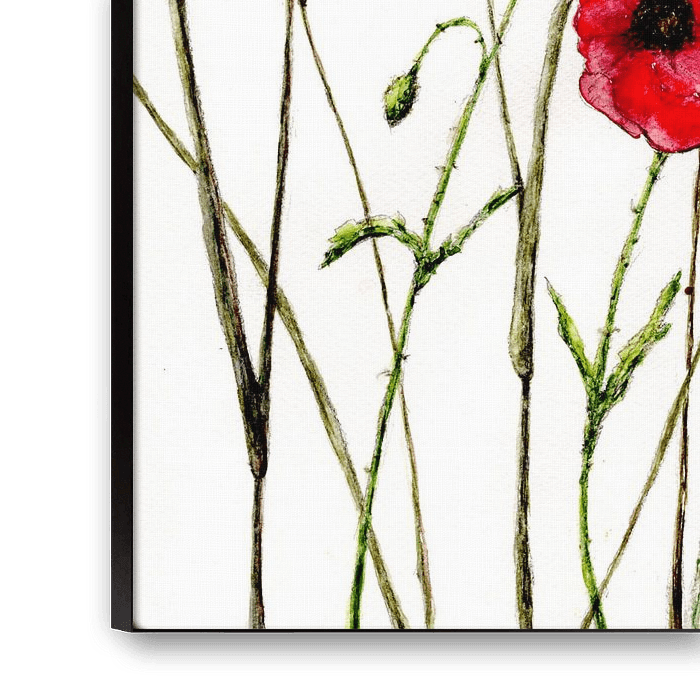 This watercolour is based on beautiful poppies, surrounded by delicate grasses, lovingly reproduced in their uniqueness in red, brown and green shades.