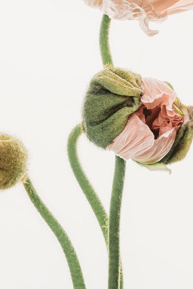 The poppy or poppy, a fragile yet powerful flower. With its delicate, velvety petals in soft salmon-pink hues, it seems to dance in the wind, as a symbol of freedom and resilience.