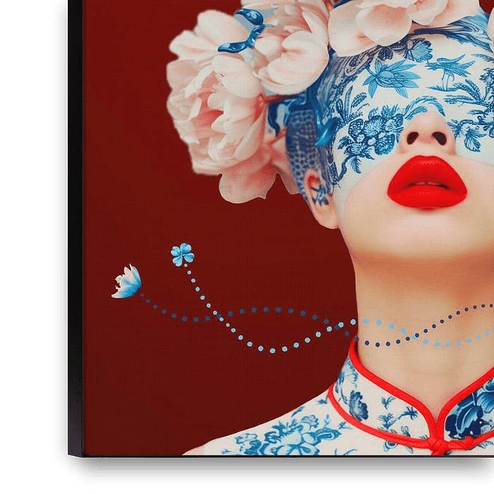 In this image, you see a woman wearing a mask made of Chinese porcelain - like a plate for her head. Her eyes are covered, not to close off, but to look inwards. Because in silence and reflection, space is created for new ideas, clear choices and vision.