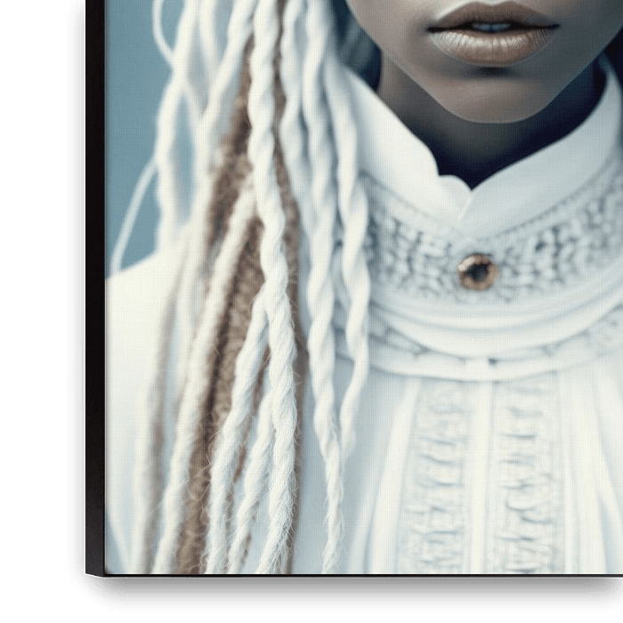 This collection consists of a series of unusual portraits of Asian women with white dread hairstyles. The images have an alienating effect, but form an atmospheric combination of warm colours and intriguing looks. The serene look makes these photo art prints look beautiful on the wall of any living space.