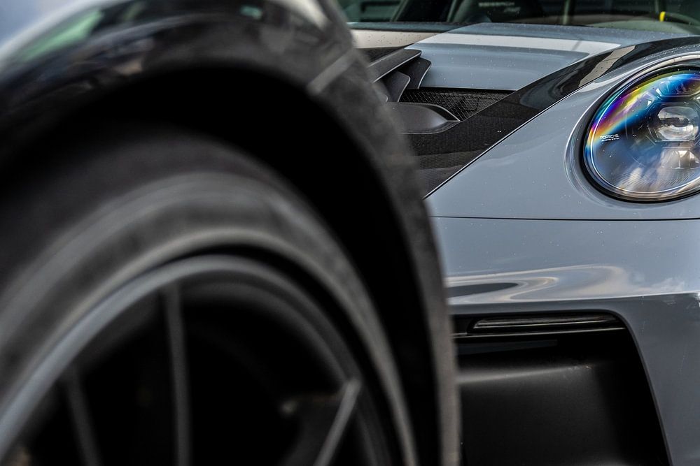 Neben der aktiven Aerodynamik verfügt der neue Porsche 911 GT3 RS über eine ganze Reihe aerodynamischer Veränderungen. Die sogenannten Louvers auf dem vorderen Kotflügel und die Lufteinlässe im hinteren Kotflügel sind nicht ganz neu. Der Splitter unten an der Stoßstange trennt die Luft in Über- und Unterströmung.