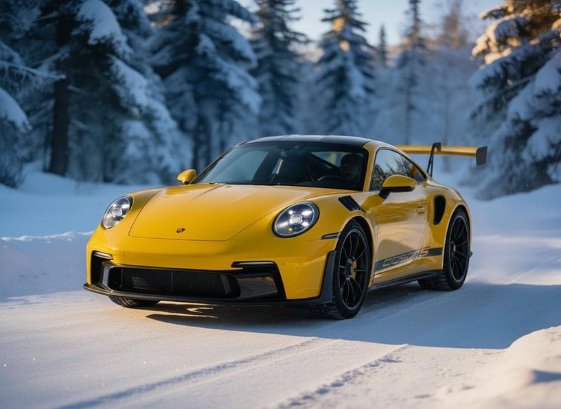The Porsche 911 GT3. Its sleek lines, aggressive splitter and iconic rear wing cut through the air. Intense sunlight creates sharp shadows on the muscular bodywork. Perfect grip, pure precision-breathtaking high-performance photography
