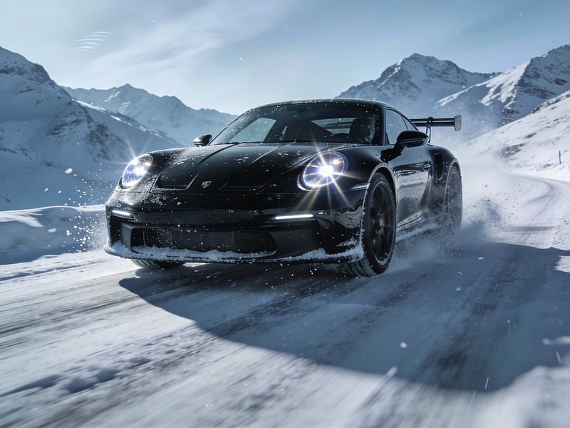 The Porsche 911 GT3. Its sleek lines, aggressive splitter and iconic rear wing cut through the air. Intense sunlight creates sharp shadows on the muscular bodywork. Perfect grip, pure precision-breathtaking high-performance photography