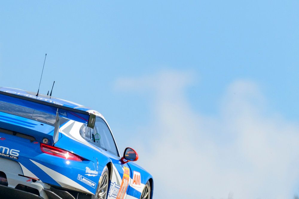About "Porsche 911 RSR race car driving up Eau Rouge"