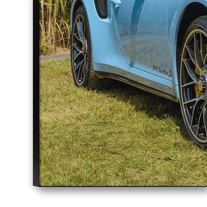 Porsche 911 Turbo S convertible sports car parked in a field. The Porsche 911 Turbo S, type 991 is fitted with a 3.8 Liter Turbo charged 6 cylinder engine. The Porsche 911 Turbo S (Type 991) is a high-performance variant of the iconic Porsche 911 series. The Type 991 designation refers to the seventh generation of the 911, which was produced from 2011 to 2019. The Turbo S variant is known for its enhanced power, advanced technology, and distinctive design.