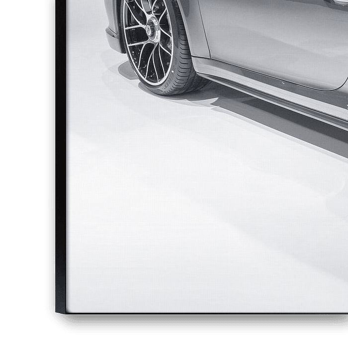 Gray Porsche 911 Turbo S sports car rear view. The 911 Turbo S is fitted with a 3.8-liter six cylinder Turbo engine producing 580 horsepower.