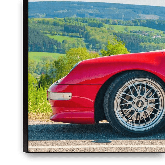 Porsche 911 Turbo of the 993 generation in a landscape in the Belgian Ardennes. The Porsche 993 is the company's internal name for the version manufactured between late 1993 and early 1998. The Porsche 911 Turbo is the top of the range model.