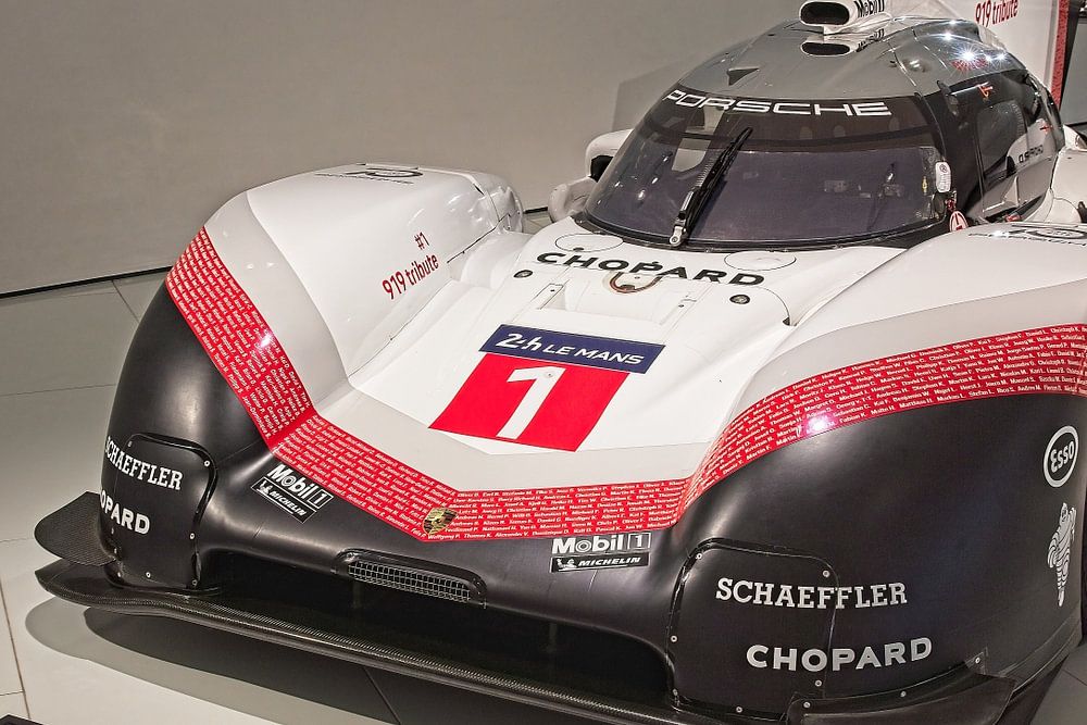 Successful Porsche Lemans racing car with combined V4 2-litre combustion engine and Electric motor (Porsche museum Stuttgart).