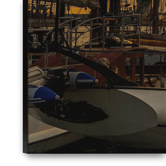 Sailing ships, oldtimers at golden sunset in the harbour of Hamburg.