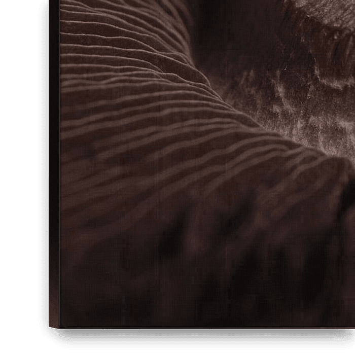 "Portobello panaroma" is a macro photograph of a portobello cropped to panorama size.