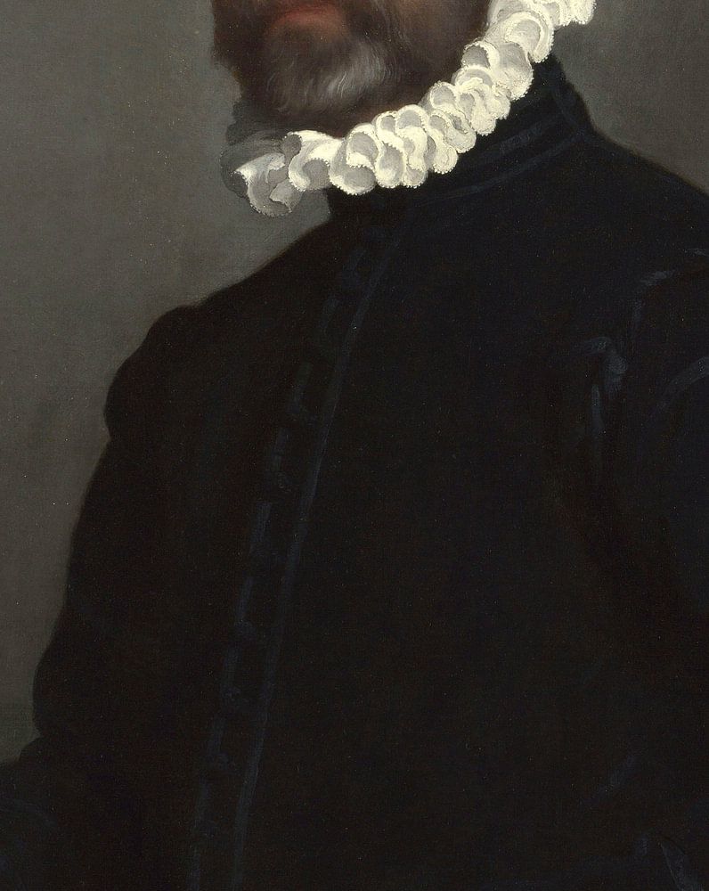 This portrait has long been known as ‘L’Avvocato‘, meaning the lawyer or counsel in Italian. The sitter’s air of well-paid theatricality and his supercilious regard, as though he is summing up evidence, may have suggested this title. It might also derive from a misreading of the folded letter in his hand which is addressed ’Al Magº Sig Julii‘ (’to the most worshipful Lord Giulio or Giuliano').