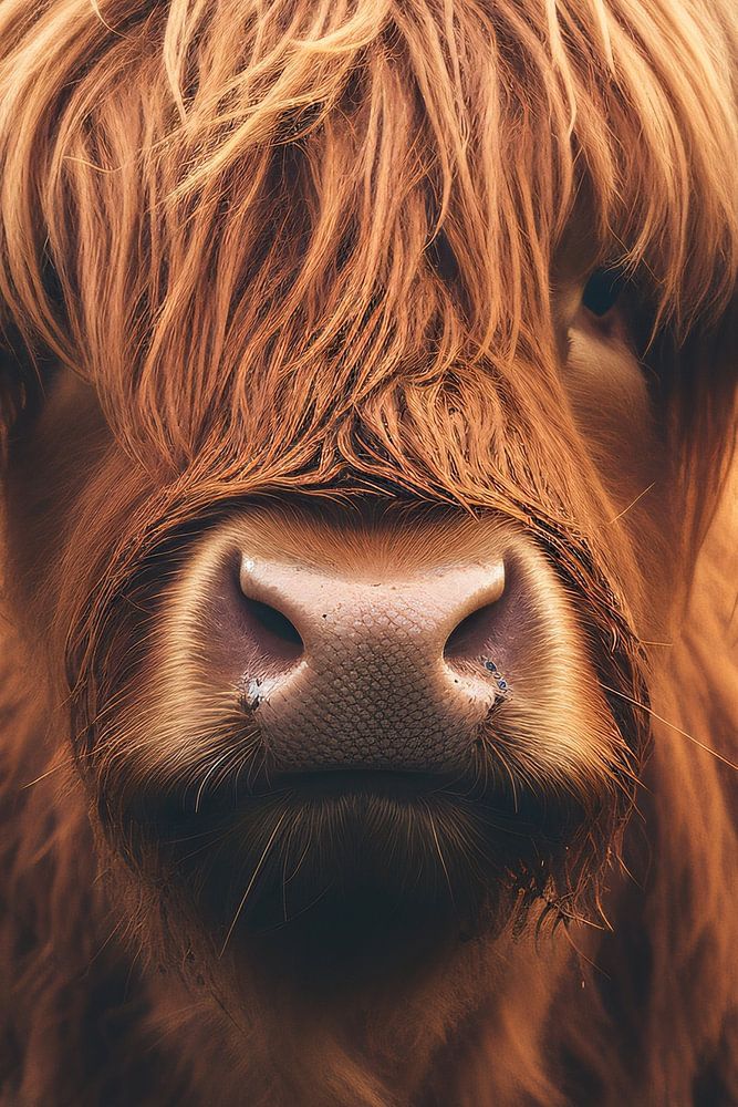 Buy this highland cow art Portrait of a Scottish Highland cattle in the pasture by Thilo Wagner on canvas, ArtFrame, poster and wallpaper, printed on demand in high quality.