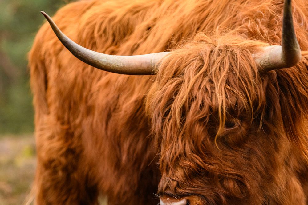Portrait of a Scottish Highlander cattle in the Veluwe nature reserve by Sjoerd van der Wal Photography