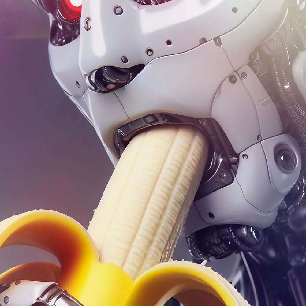Buy this portrait Portrait of a banana eating robot by Digital Art Nederland on canvas, ArtFrame, poster and wallpaper, printed on demand in high quality.