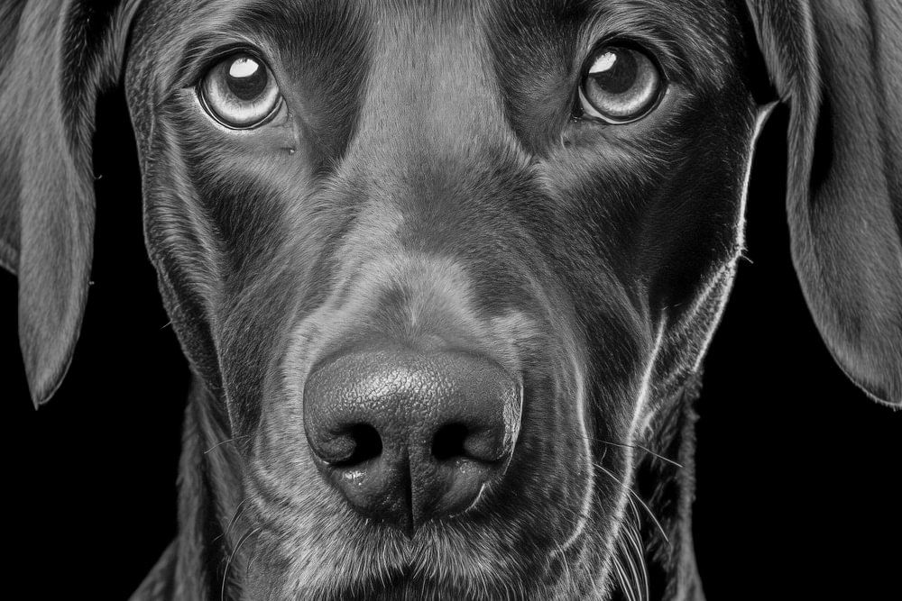 Buy this portrait Portrait of a dog, black and white background, art design by Animaflora PicsStock on canvas, ArtFrame, poster and wallpaper, printed on demand in high quality.