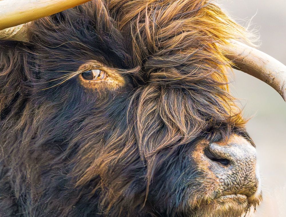 About "Portrait of a female Scottish highland calf with strongly curved horns"