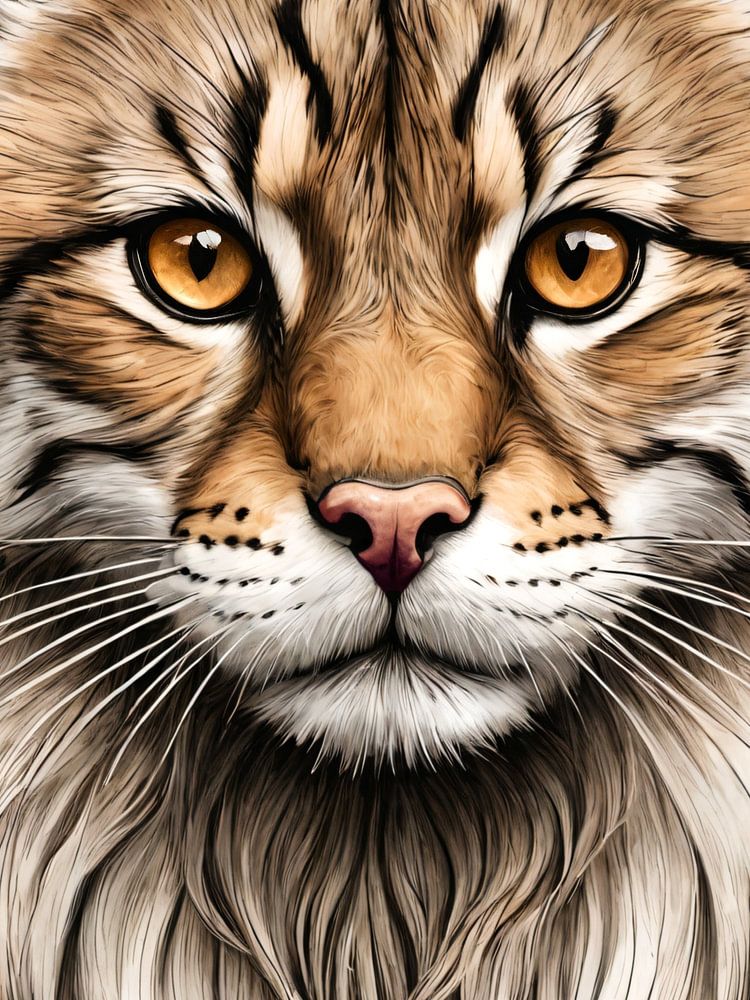 A.I. portrait of a beautiful wild cat with different shades of brown in her dense fur.