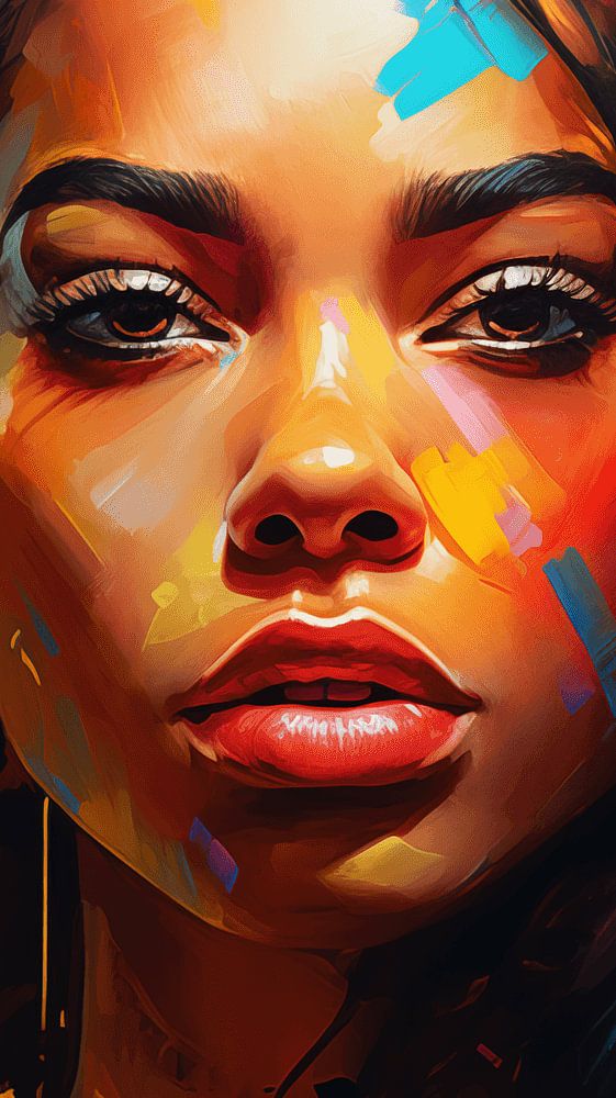 About "Portrait of an African woman with make-up, body painting, pop art design, vertical"