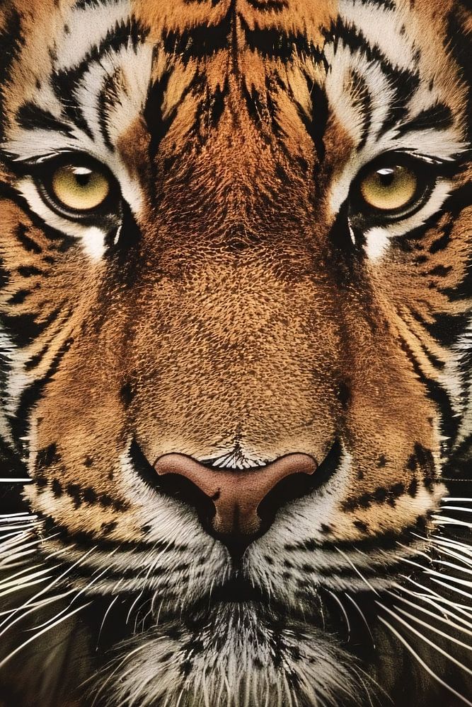 Immerse yourself in the intense gaze of a majestic tiger, captured in breathtaking detail. This hyper-realistic artwork brings to life the power and beauty of this magnificent predator. The rich colours and textures of the fur, the penetrating eyes and subtle muscle tension create an immersive experience that takes you into the wild. Perfect for animal and art lovers, this piece adds a touch of exotic elegance to any space.