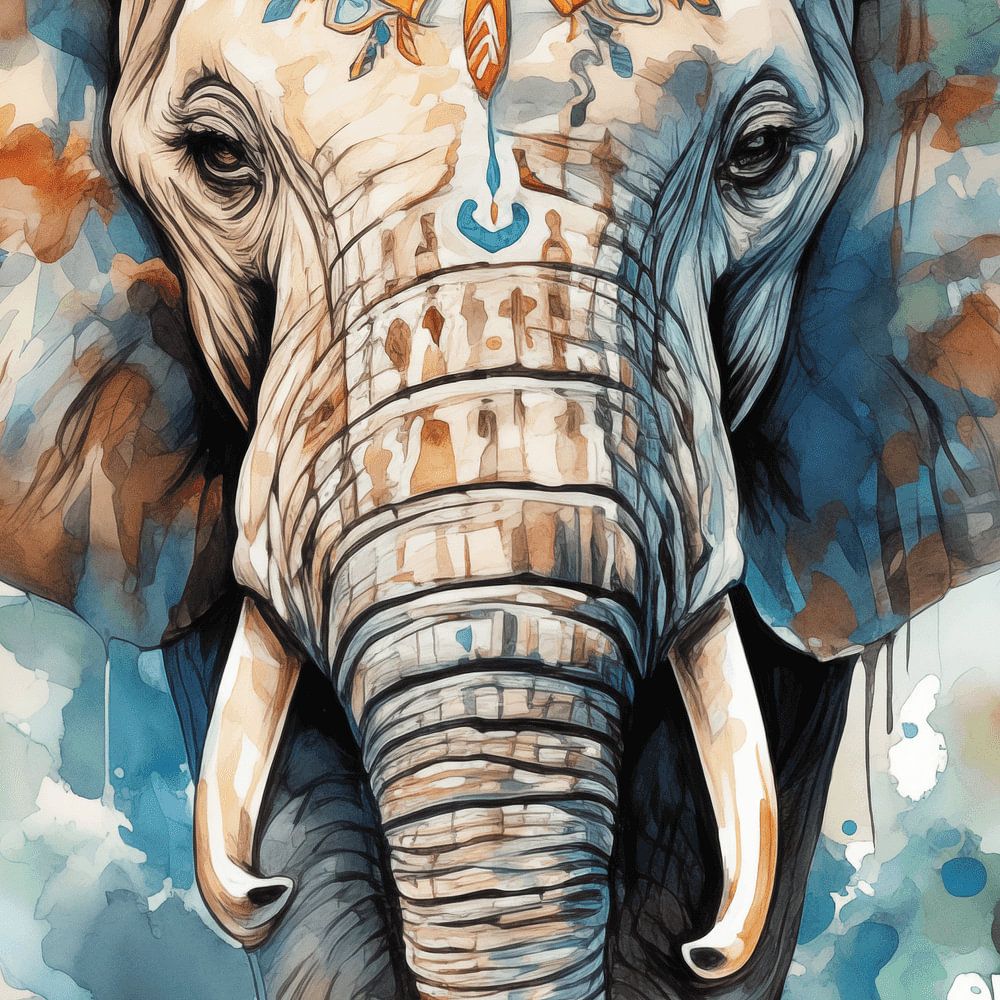About "Portrait of an Indian elephant, watercolour art design and colourful headscarf"
