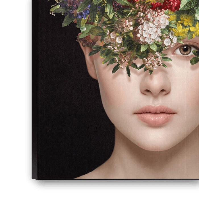 Extraordinary portrait of a young woman surrounded by flowers and accompanied by a butterfly.