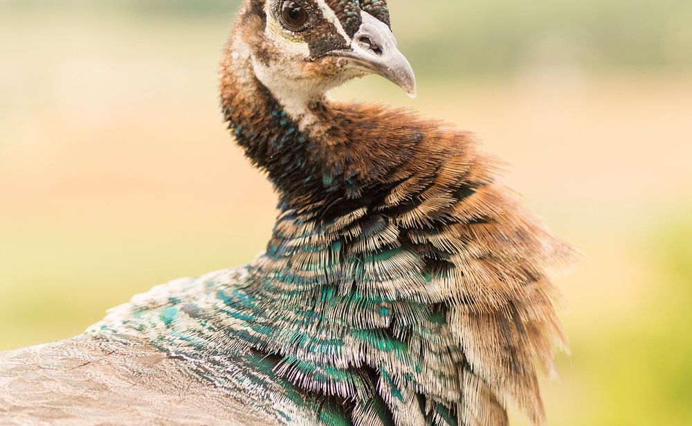 But recently I was able to photograph a female peacock up close and I was pleasantly surprised by the beautiful markings and feathers of this bird. Just look at the tufts on the head, the green details at the level of the neck and the beautiful, rounded shapes of the feathers on the body. This animal is also worthy of being photographed!