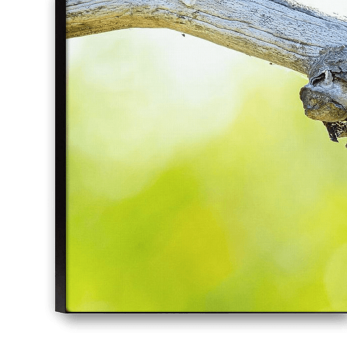 This stunning common kingfisher is posing on a branch, waiting for the perfect fish to catch. This razor sharp image with its blurry bright green and washed white background will feature perfectly well on every wall.