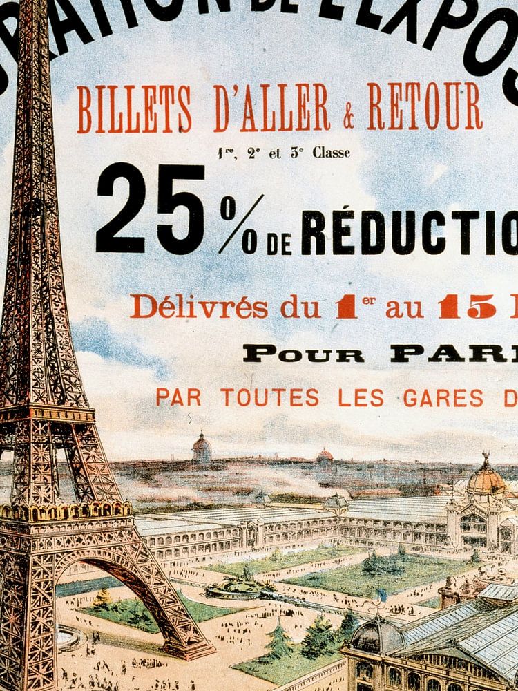 This great poster for the 1889 World's Fair advertises the release of Paris' most famous landmark - the Eiffel Tower.