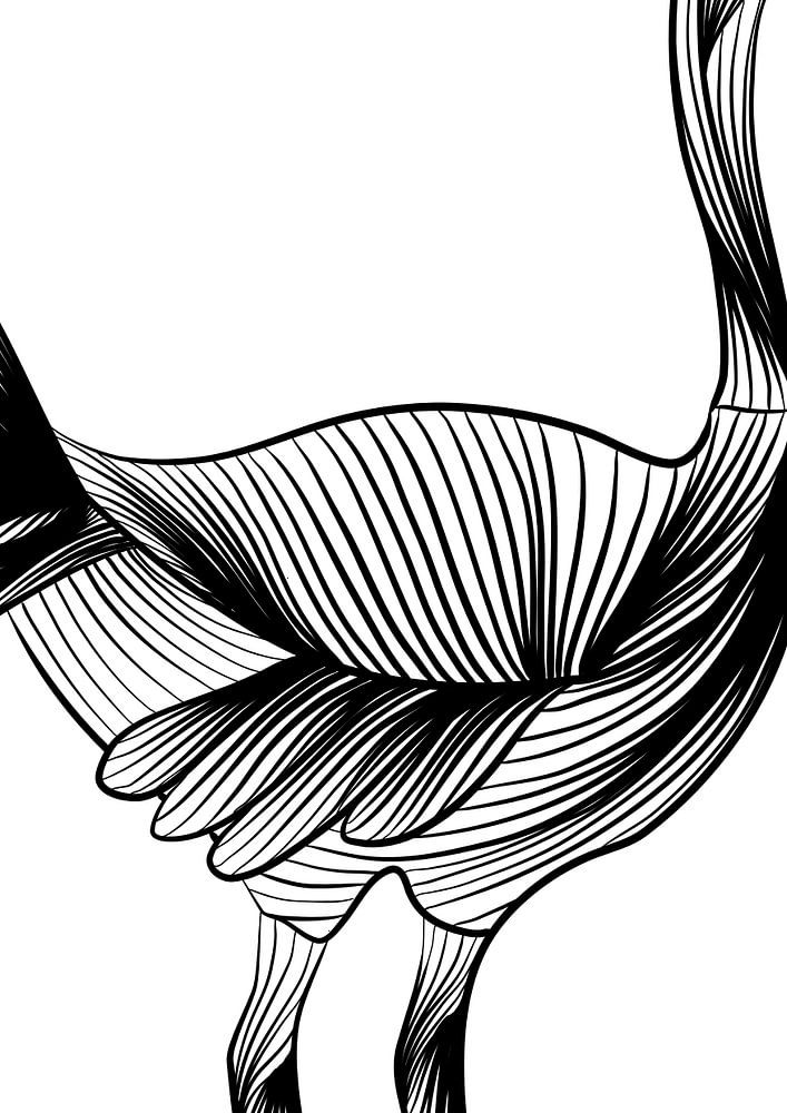 Ostrich Illustration - Black and white line illustration of an ostrich. Perfect for the children's room.