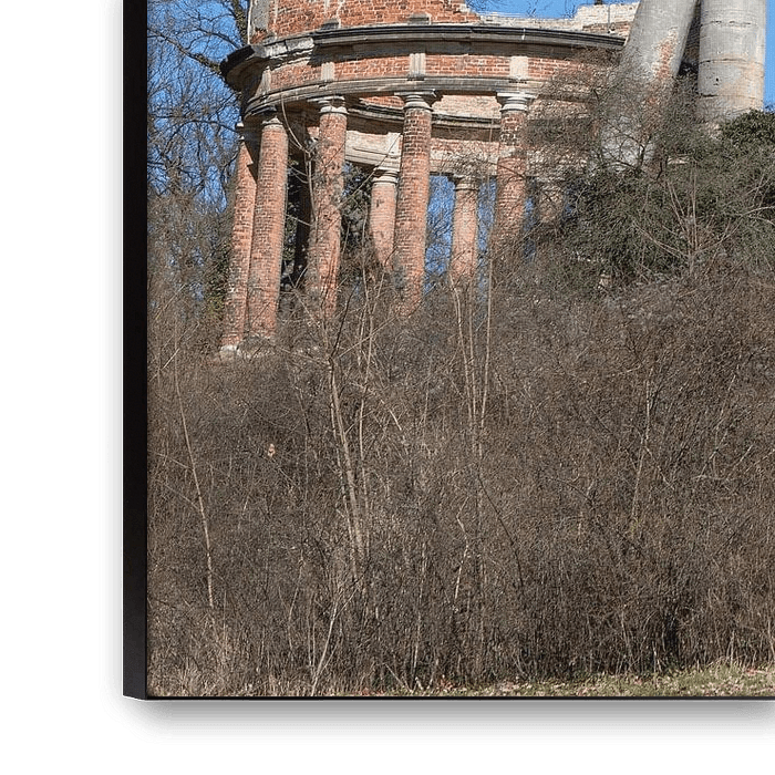 The Ruinenberg is a hill between Potsdam-Bornstedt in the west and Potsdam's Jägervorstadt in the east. In 1748, Frederick the Great had a water reservoir built on the hilltop to irrigate the fountains in the adjacent Sanssouci Park to the south and decorated it with artificial ruins as antique design elements. In the course of landscape beautification around Potsdam, Frederick William IV commissioned the garden architect Peter Joseph Lenné with the horticultural design of the Ruinenberg grounds in 1841.