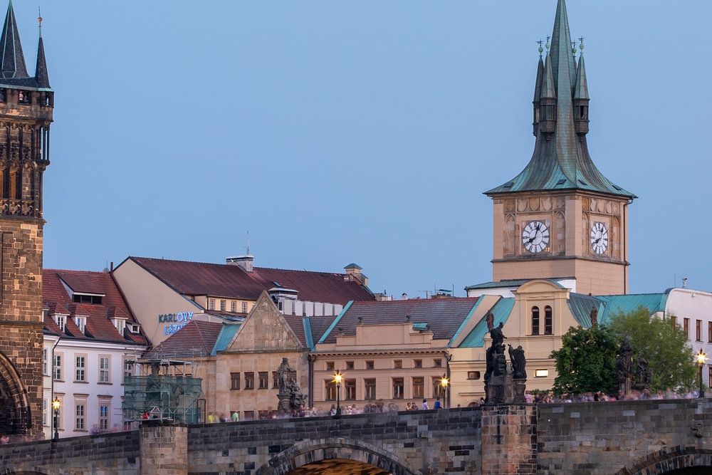 Charles Bridge (Karlův most in Czech) is a bridge built over the Vltava River in the 14th century. It connects Prague's Old Town on the right bank with the Lesser Town on the left. It is the oldest preserved bridge over the Vltava and one of the oldest stone bridges in Europe. The bridge was given its current name after Emperor Charles IV in 1870 and is considered a symbol of the city.