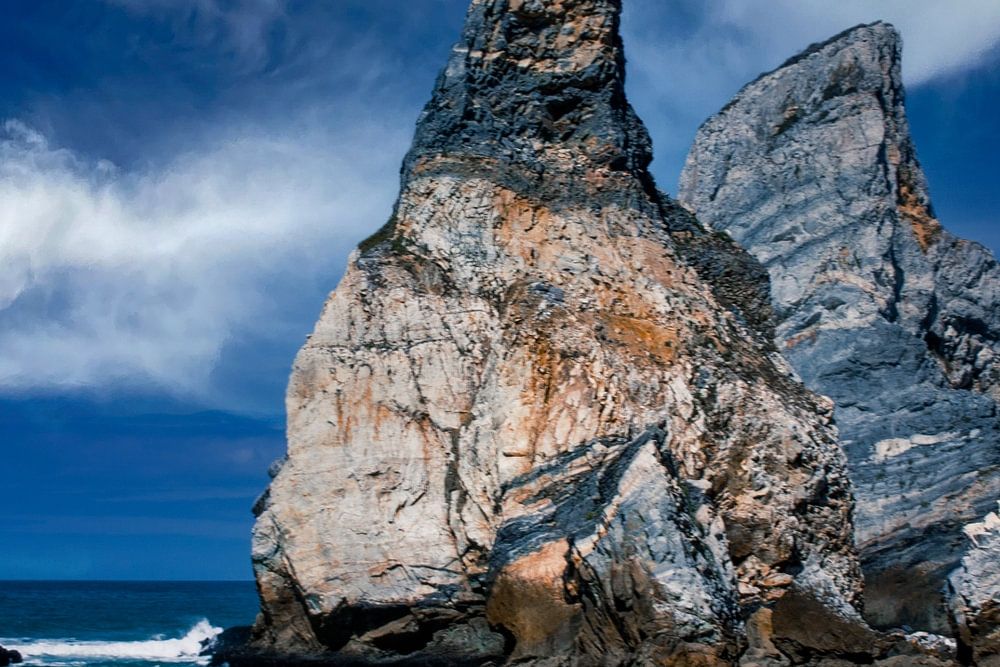 A beautiful beach landscape made on the beach Praia da Ursa near the town of Sintra which is again near Lisbon. It is a beautiful beach which feels very rough and unspoilt because of the colossal rock formations.