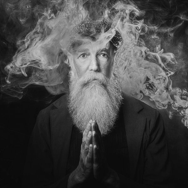 About ‘Praying man with beard shrouded in smoke.’ by René von Hout